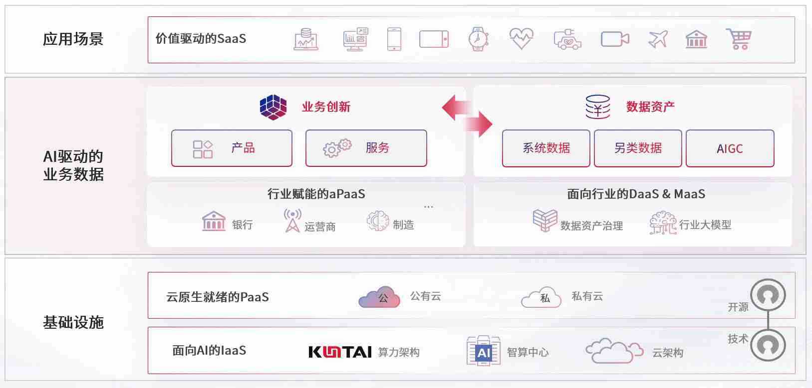数字时代,,,,围绕企业数字化转型的关键要素,,,,彩霸王数码开创性的提出数云融合战略和技术体系框架,,,着力在云原生、、、、数字原生、、AI原生和信创产业上架构产品和服务能力,,,为处在不同数字化转型阶段的快消零售、、、、汽车、、、金融、、、、医疗、、、政企、、、教育、、、运营商等行业客户提供泛在的敏捷IT能力和融合的数据驱动能力,,,,构建跨界融合创新的数字业务场景和新业务模式,,助力企业级客户建立面向未来的核心能力和竞争优势,,,全面推动社会的数字化、、、、智能化转型升级。。。